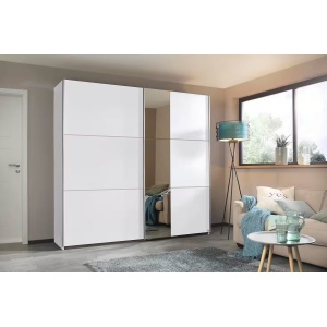 Dressing 181 cm lungime, 2 uși glisante, oglindă, culoare alb, 223 cm înălțime