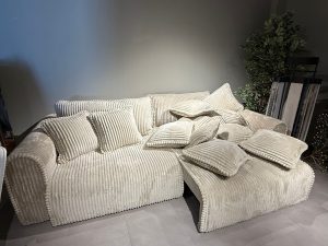Boxspring ~Bora Bora~ cu lada de depozitare, saltea cu topper integrat, material țesătură catifelată plușată, culoare ivory