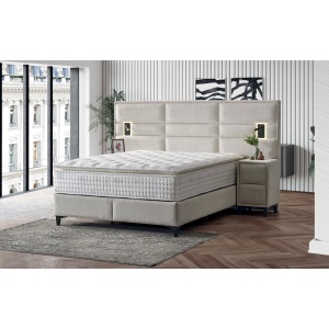 Boxspring ~THALUMA~ cu ladǎ de depozitare, structurǎ metalicǎ si saltea premium cu topper integrat