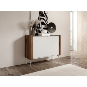 Bibliotecă modernă ~NORDIC~ , 2 uși, culoare cashmere combinat cu nuc, fronturi MDF, 105 cm lungime