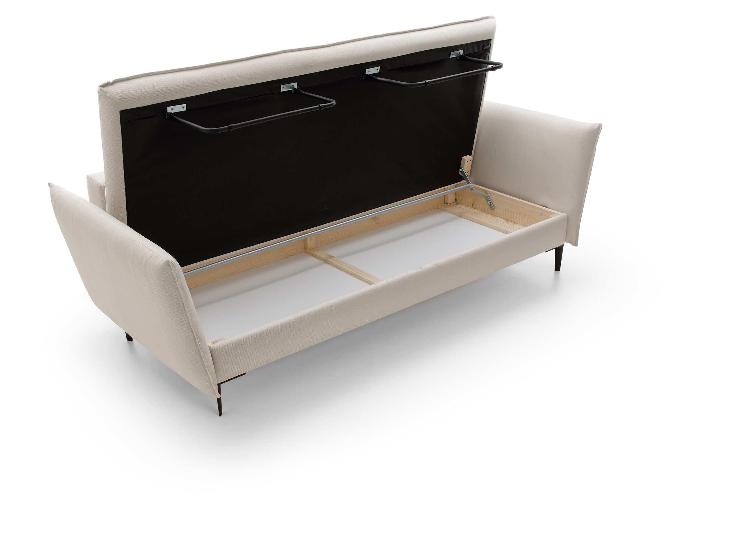 Funcția de extensie transformă rapid canapeaua într-un pat spațios (205×140 cm), ideal pentru musafiri sau seri de odihnă în plus. Lada de depozitare integrată oferă spațiu practic pentru lenjerii, perne sau pături, păstrând mereu ordinea în casă.