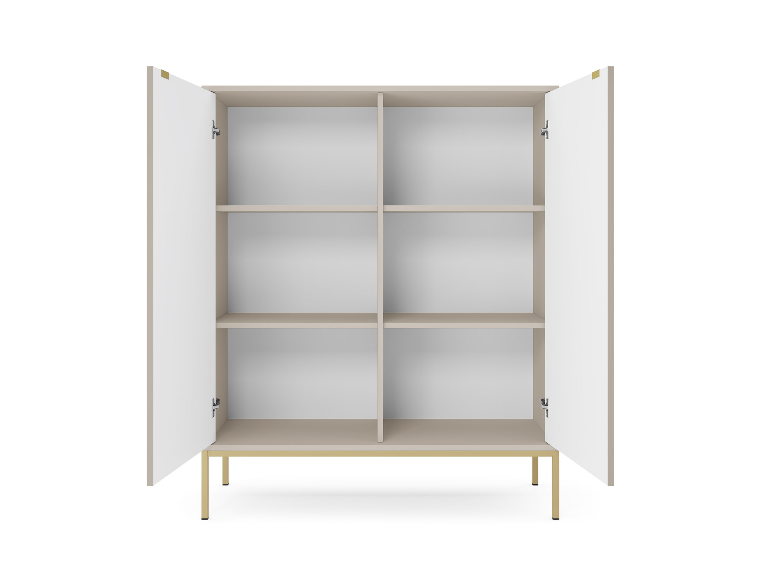 Comodă Înaltă Premium ~Lusso~ 2 uși, fronturi MDF canelate, finisaj crem mat, cadru și picioare metalice aurii