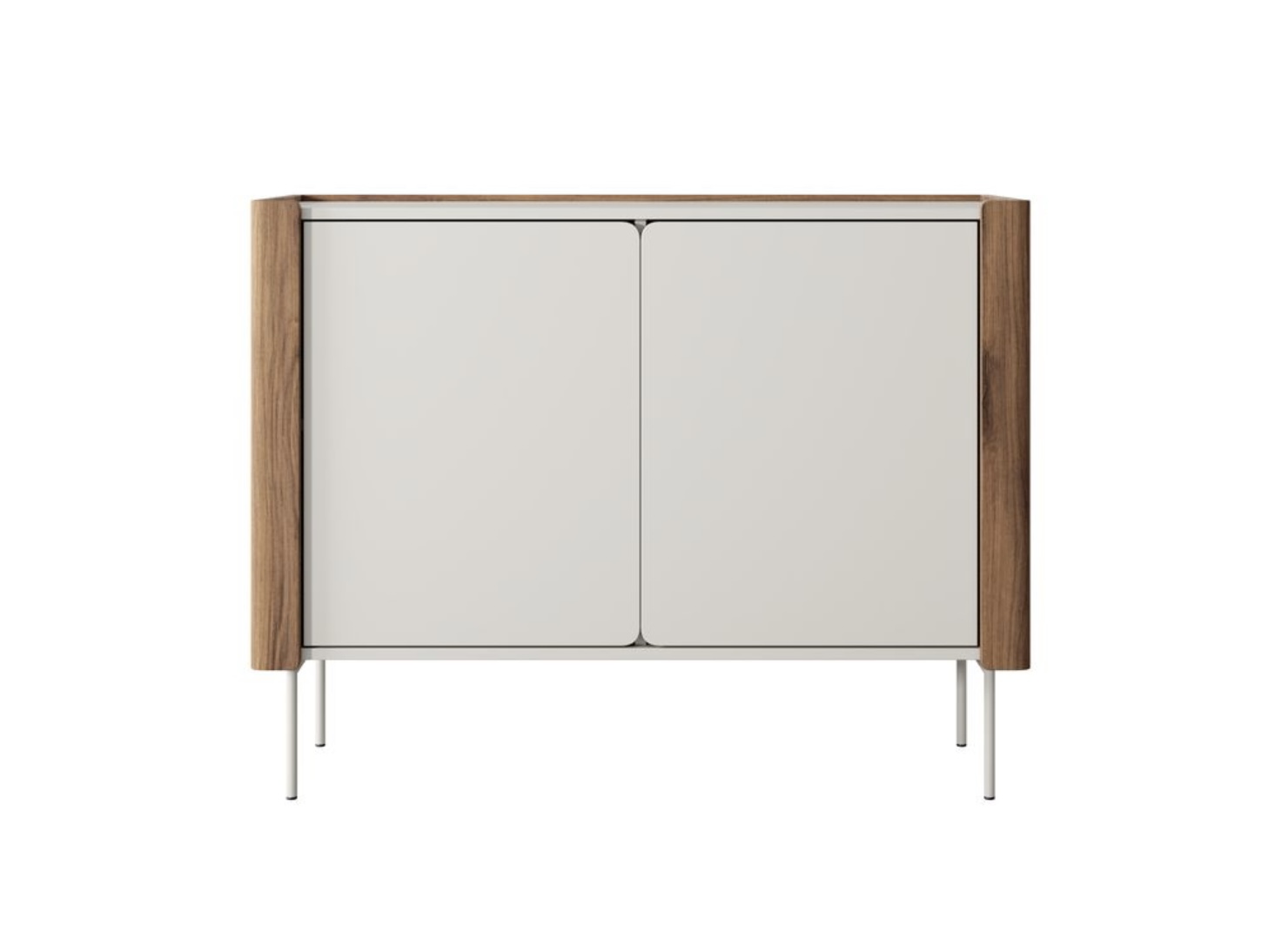 Comodă modernă ~NORDIC~ 2 uși, culoare cashmere combinat cu nuc, fronturi MDF, 105 cm lungime