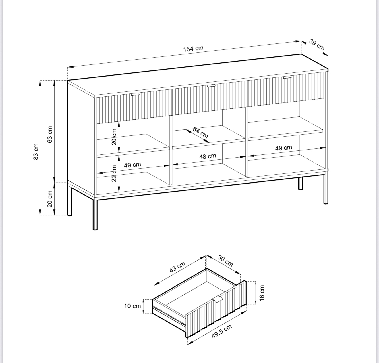 Comoda Premium Lusso este expresia eleganței contemporane: fronturi MDF canelate cu finisaj crem mat, detalii metalice aurii și picioare subțiri ce conferă un aer ușor și sofisticat. Cele 3 uși și 3 sertare asigură un spațiu de depozitare generos și bine compartimentat, fiind alegerea ideală atât pentru living, cât și pentru dining sau holuri moderne.