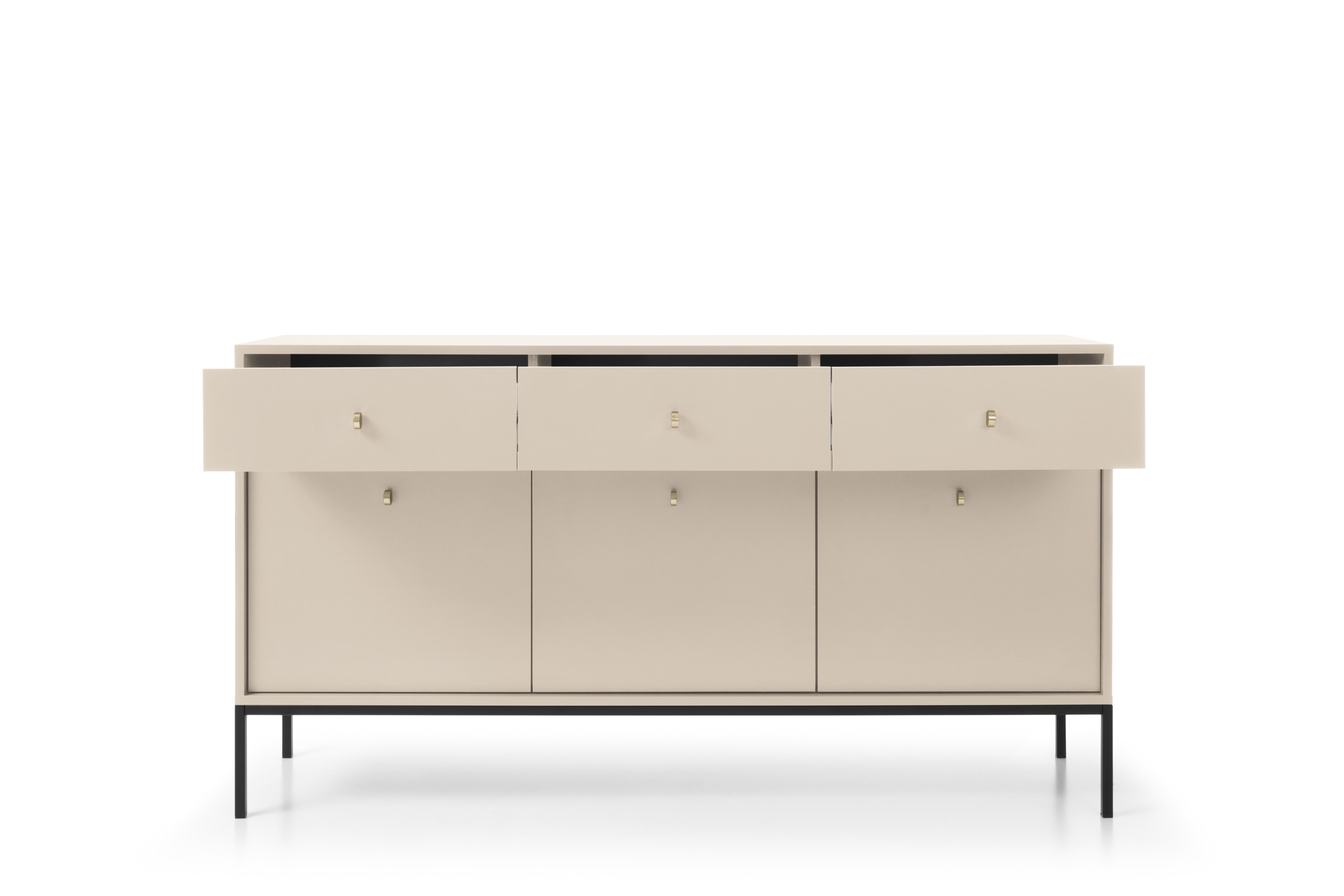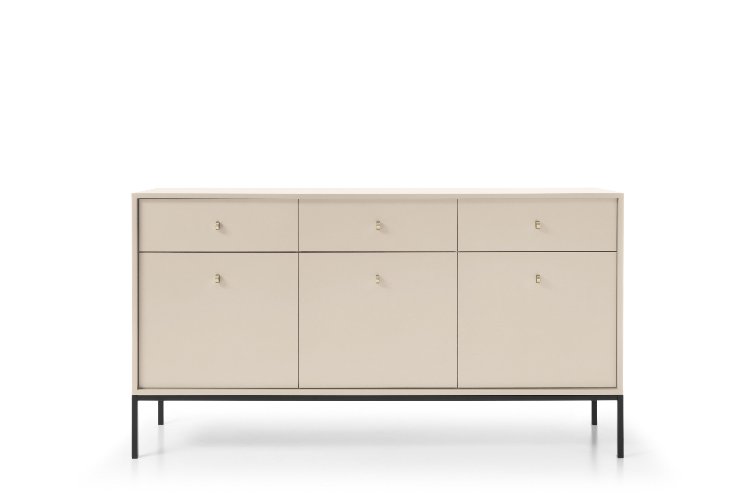 Comodă Premium ~PALAZZO~ 3 uși, 3 sertare, culoare crem mat, picioare metalice negru mat
