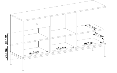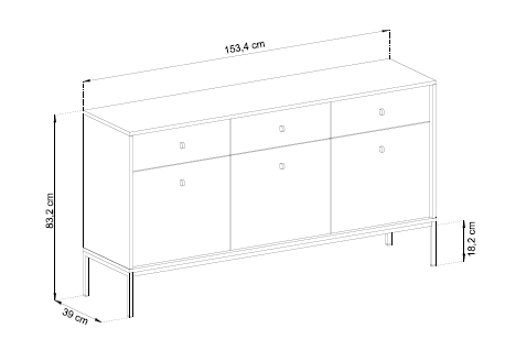 Cele trei sertare spațioase și cele trei uși laterale oferă un spațiu generos de depozitare, perfect pentru accesorii, documente, veselă sau textile de casă.