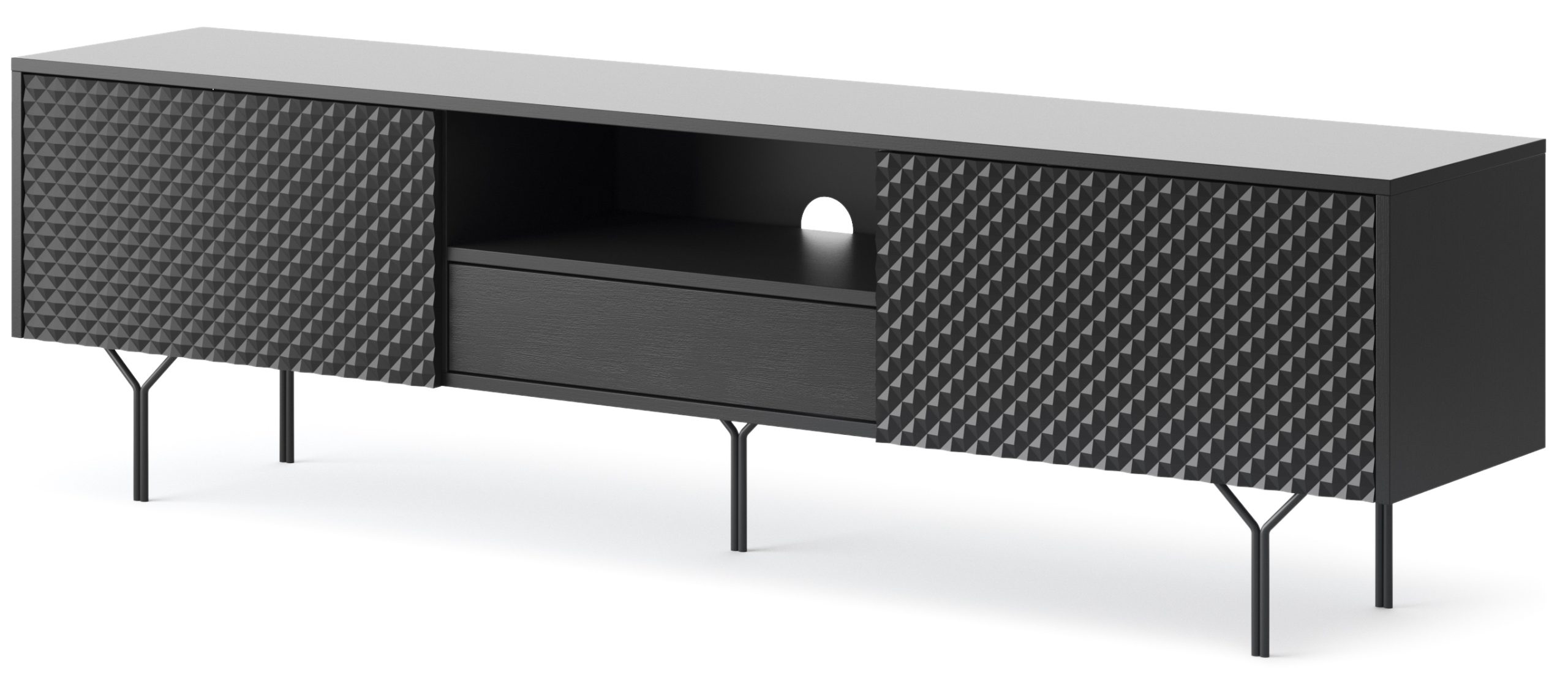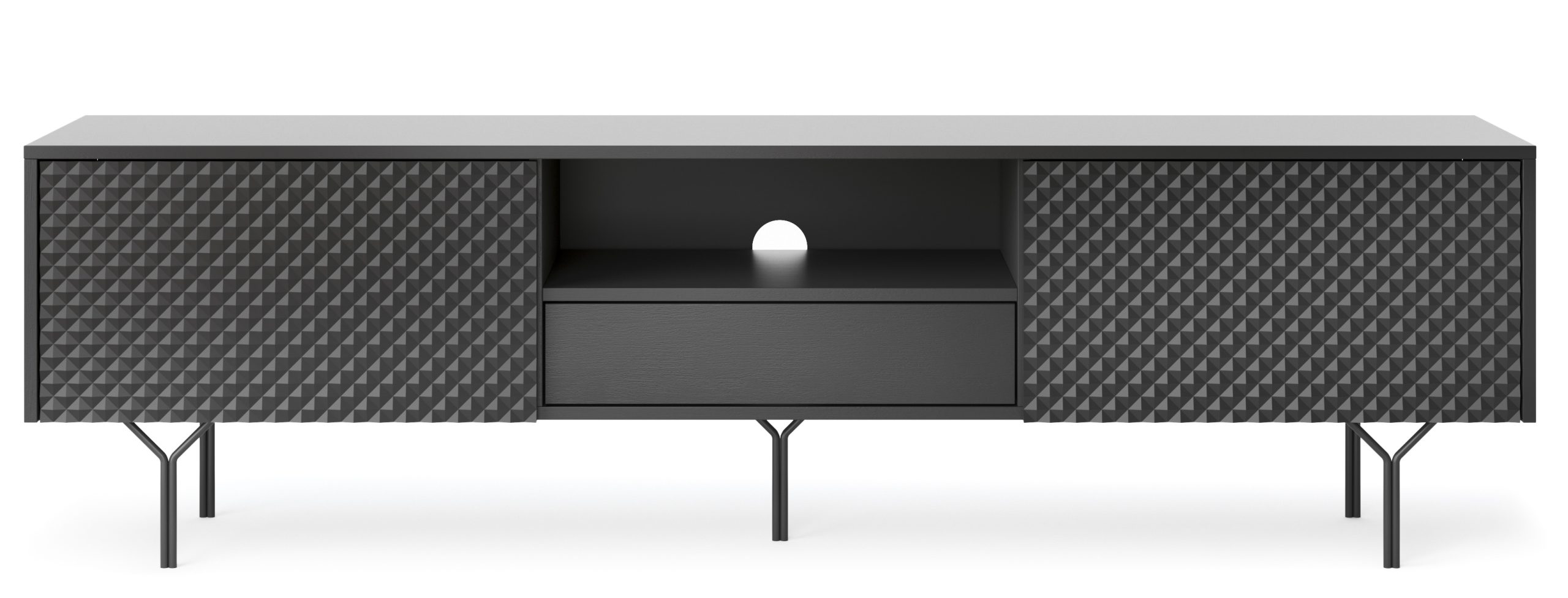 Comodă TV Premium ~Armony~ fronturi MDF, sistem push-to-open, finisaj negru mat