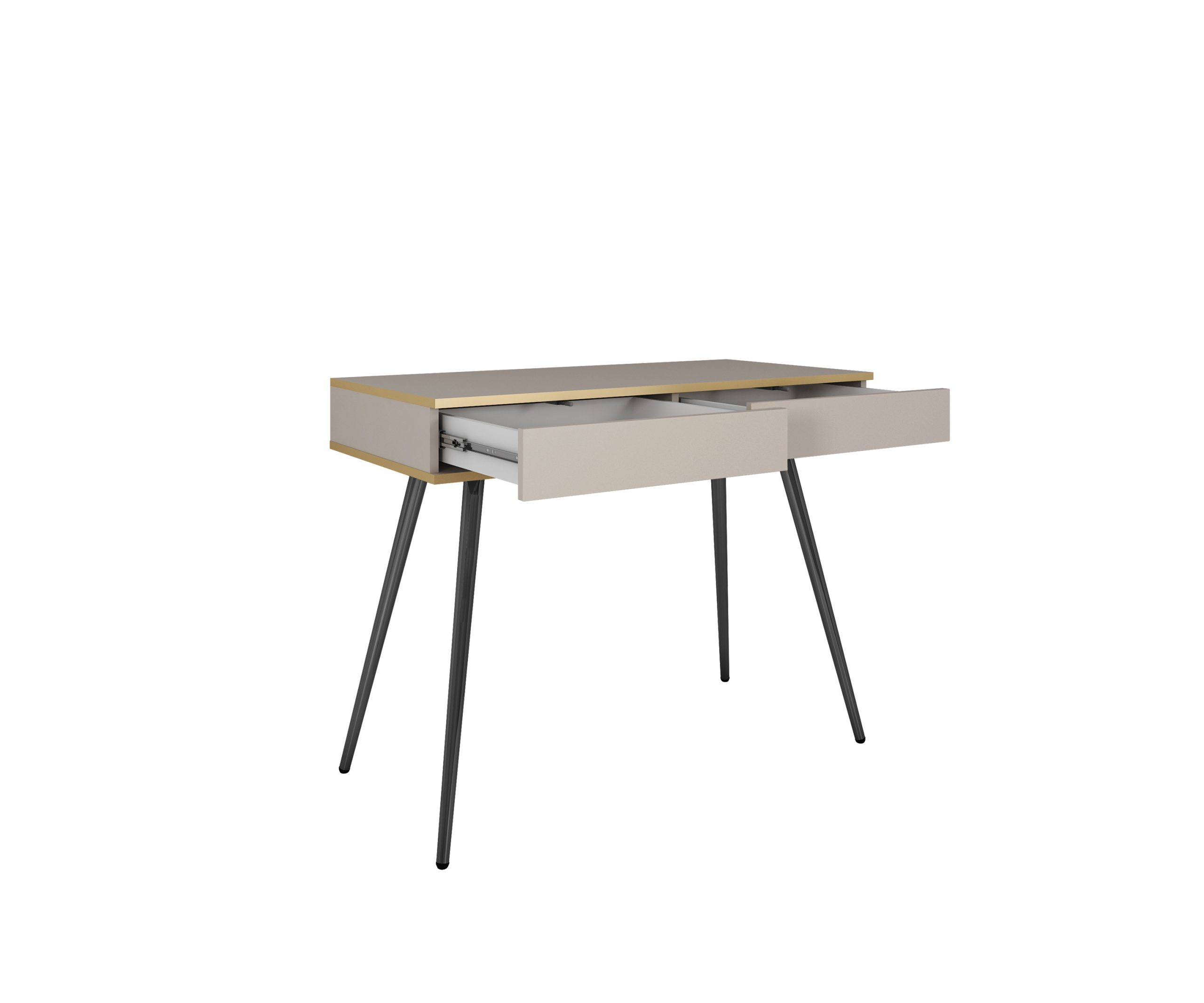 Consolă Premium ~Velour~ 2 sertare, finisaj cashmere mat, detalii aurii, picioare metalice negre