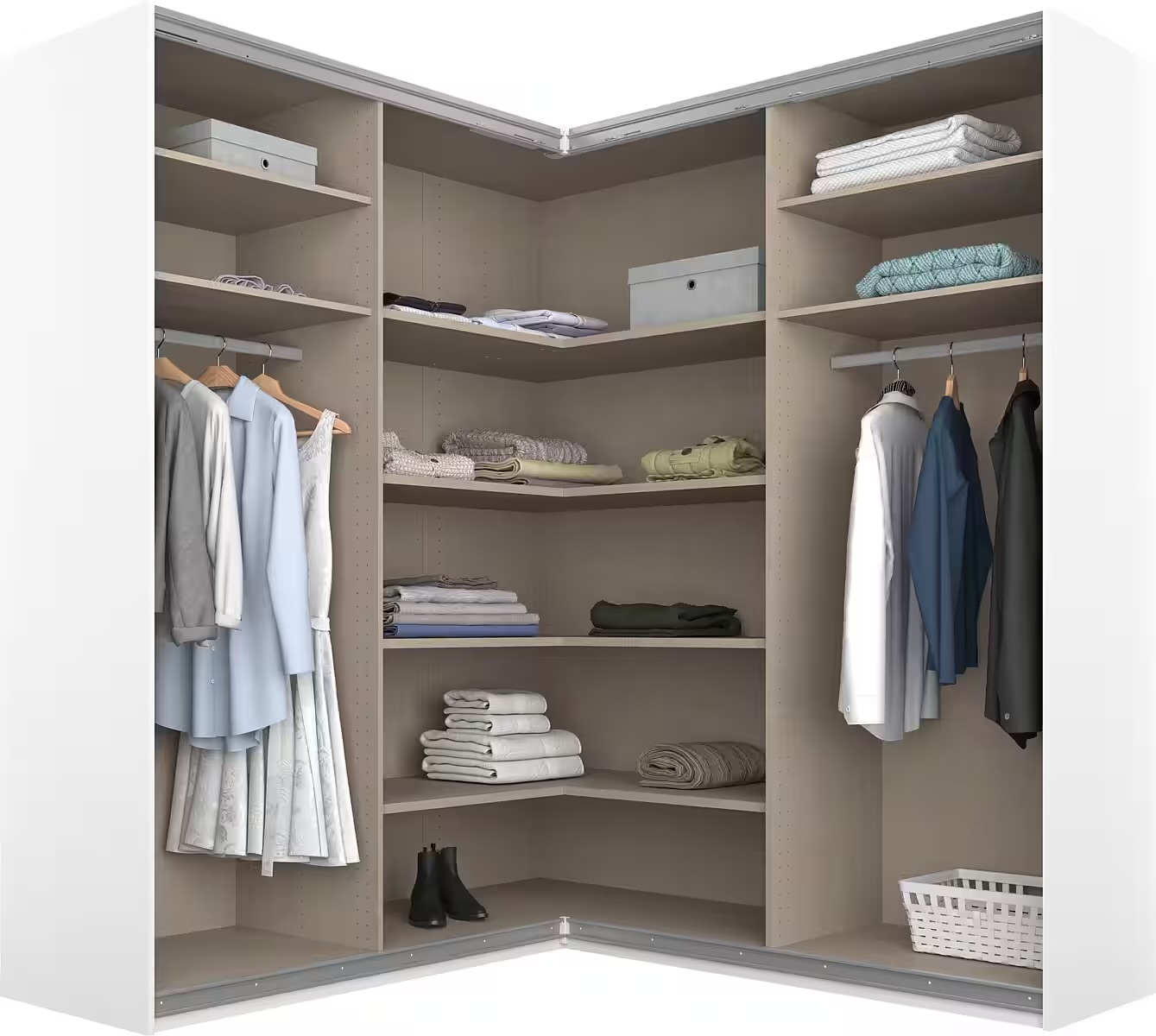 Transformă-ți dormitorul într-un spațiu ordonat și elegant cu dressingul premium în finisaj alb lucios, completat de oglinzi generoase și o compartimentare practică. Creat în Germania din PAL de înaltă calitate, acest dressing îmbină perfect designul modern cu funcționalitatea maximă. Cele patru uși glisante, dintre care două cu oglinzi, oferă acces ușor și amplifică vizual spațiul, adăugând un plus de lumină și rafinament încăperii. Interiorul generos include 12 rafturi și 2 bare pentru haine, oferind suficient loc pentru depozitarea hainelor, accesoriilor și lenjeriilor.