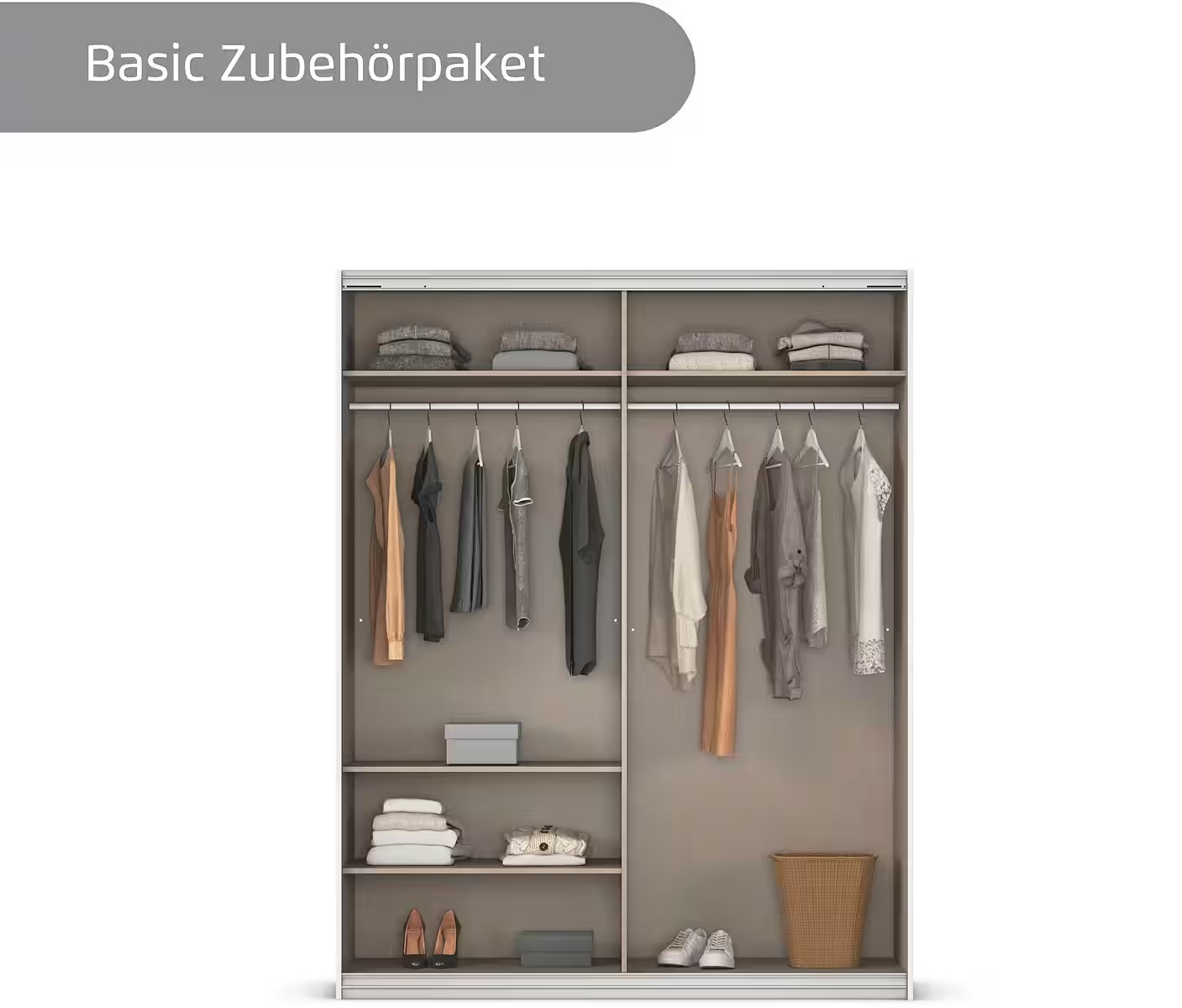 Dressing 131 cm lungime, 2 uși glisante, culoare alb, 191 cm înălțime