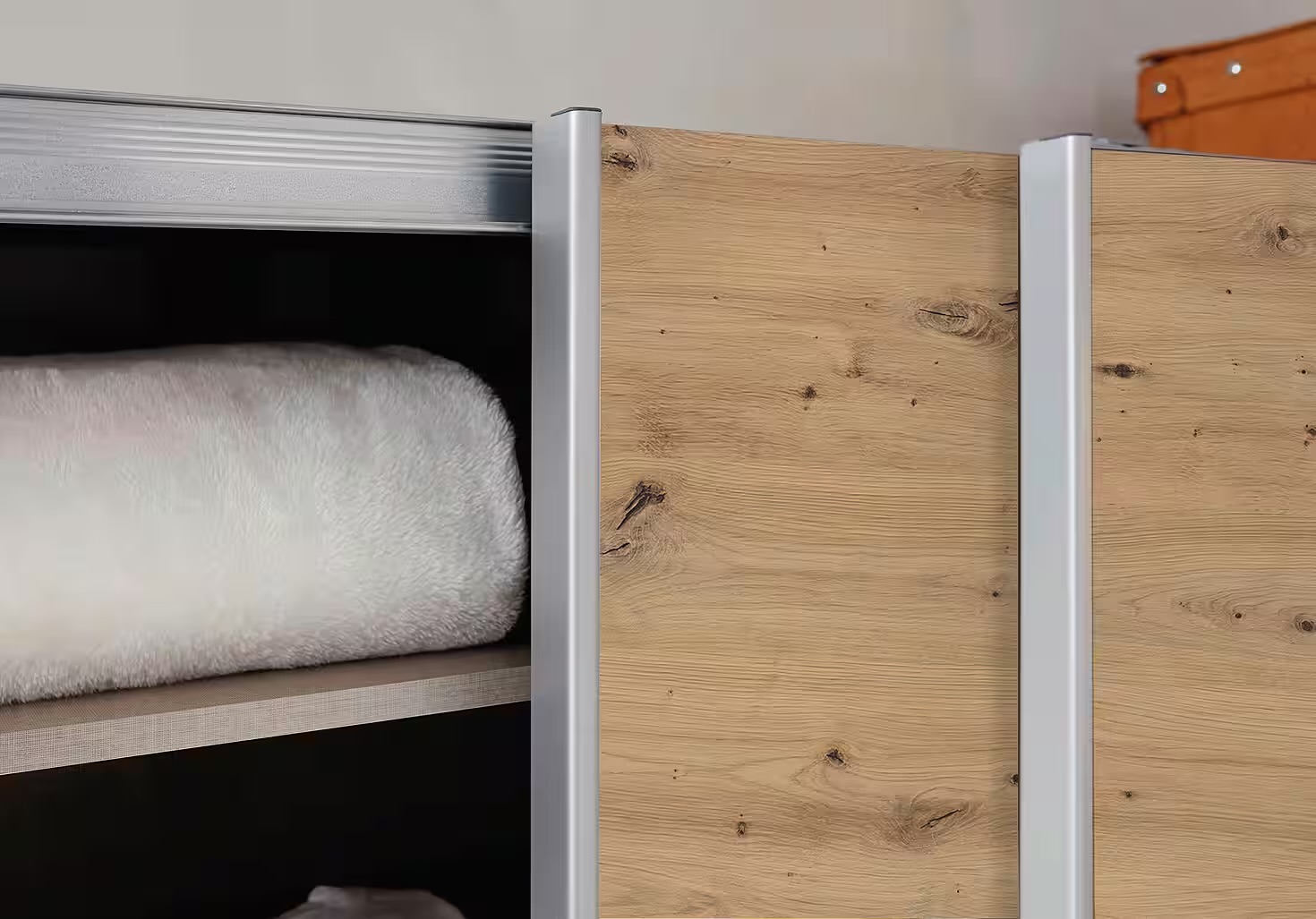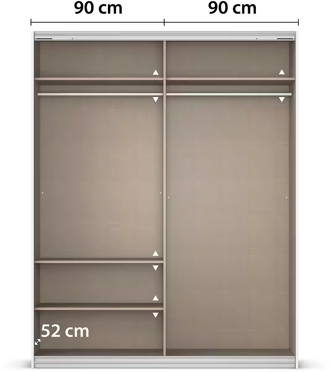 Dressing 181 cm lungime, 2 uși glisante, cu riflaje, culoare alb-stejar, 210 cm înălțime