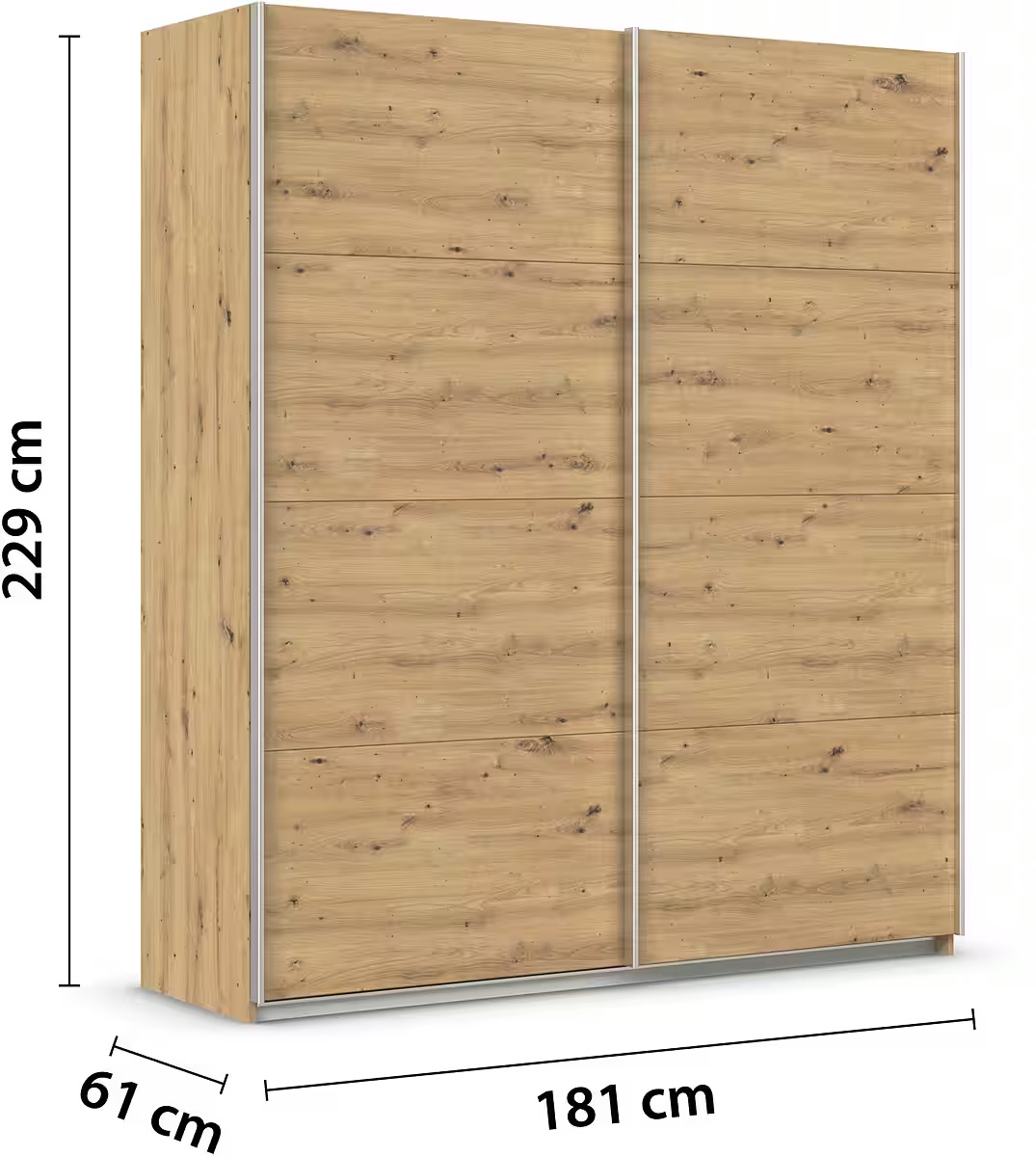Dressing 181 cm lungime, 2 uși glisante, culoare stejar, 229 cm înălțime
