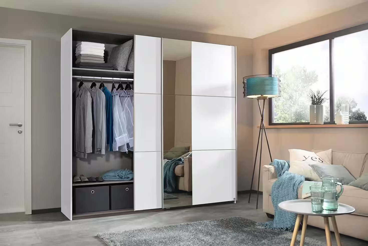 Adaugă un plus de eleganță și luminozitate dormitorului tău cu acest dressing modern alb cu uși glisante și oglindă încorporată. Designul său rafinat și funcțional este ideal pentru spațiile contemporane, oferind atât un aspect sofisticat, cât și o organizare eficientă a garderobei. Confecționat din PAL de calitate superioară, acest dressing combină durabilitatea cu un finisaj lucios, ușor de întreținut. Oglinda amplasată pe una dintre uși adaugă profunzime și creează iluzia unui spațiu mai mare, în timp ce sistemul de uși glisante asigură o utilizare practică, fără a necesita spațiu suplimentar la deschidere. Interiorul este bine compartimentat, având 4 rafturi spațioase, 2 compartimente mari și 2 bare pentru umerașe, perfecte pentru hainele de zi cu zi, costume, rochii și accesorii.