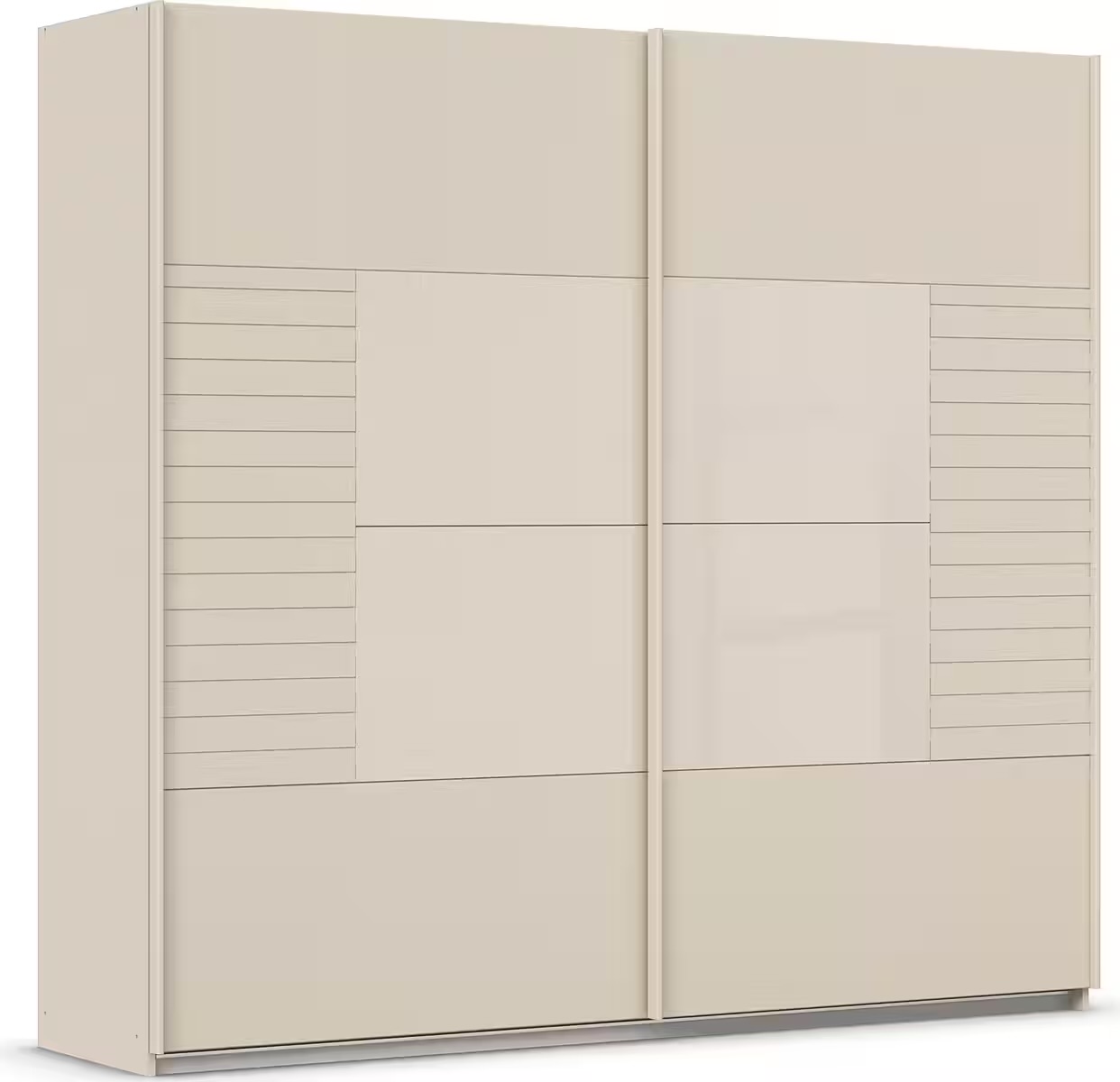 Dressing 226 cm lungime, 2 uși glisante, culoare cașmir, fronturi sticlă, 210 cm înălțime
