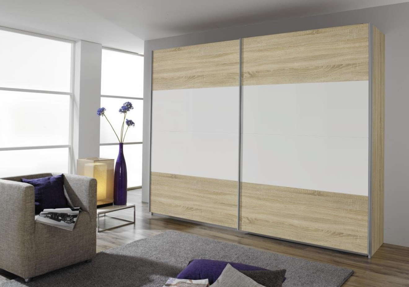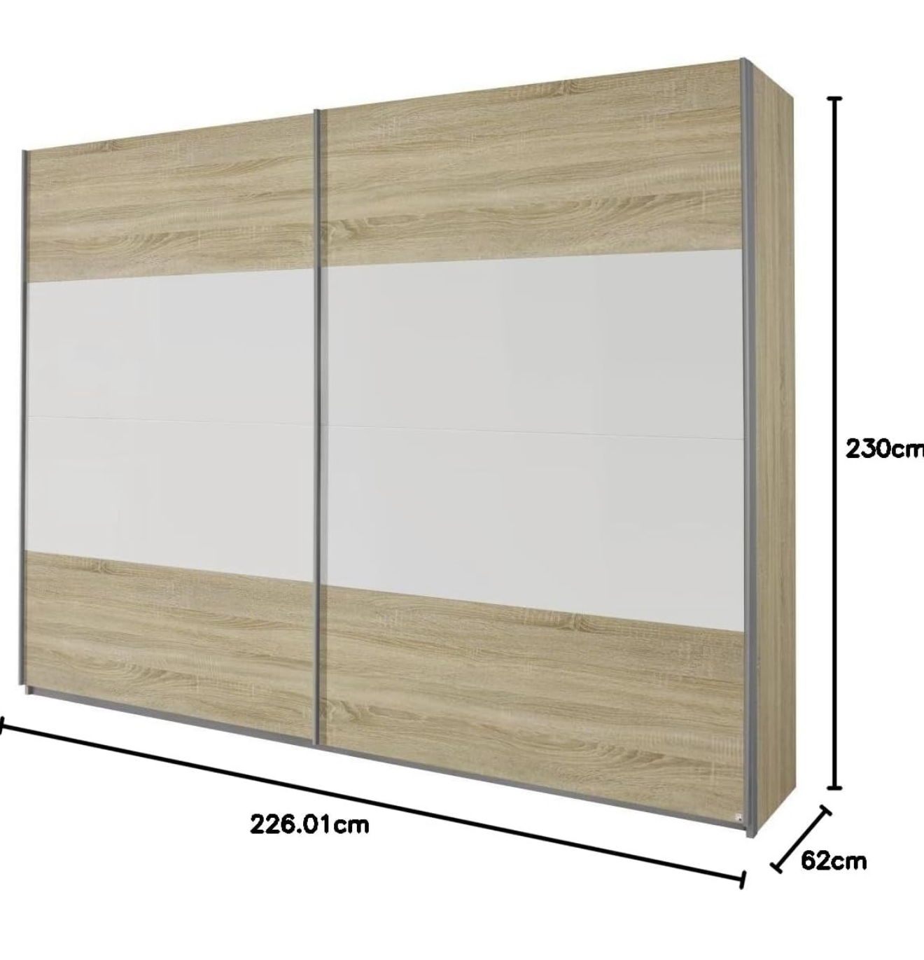 Dressing 226 cm lungime, 2 uși glisante, culoare sonoma-alb, 210 cm înălțime