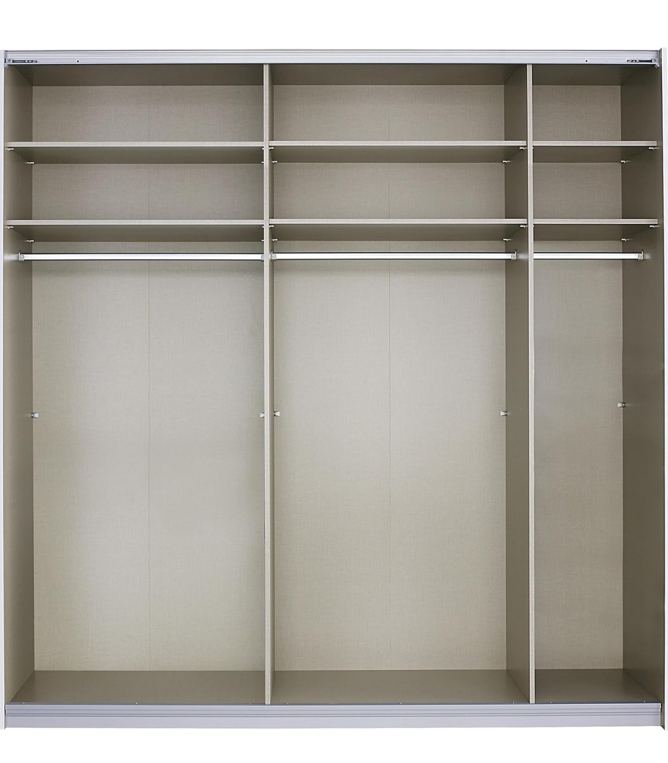 Dressing 181 cm lungime, 2 uși glisante, cu riflaje, culoare alb-stejar, 210 cm înălțime