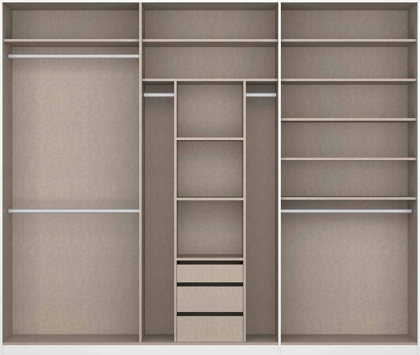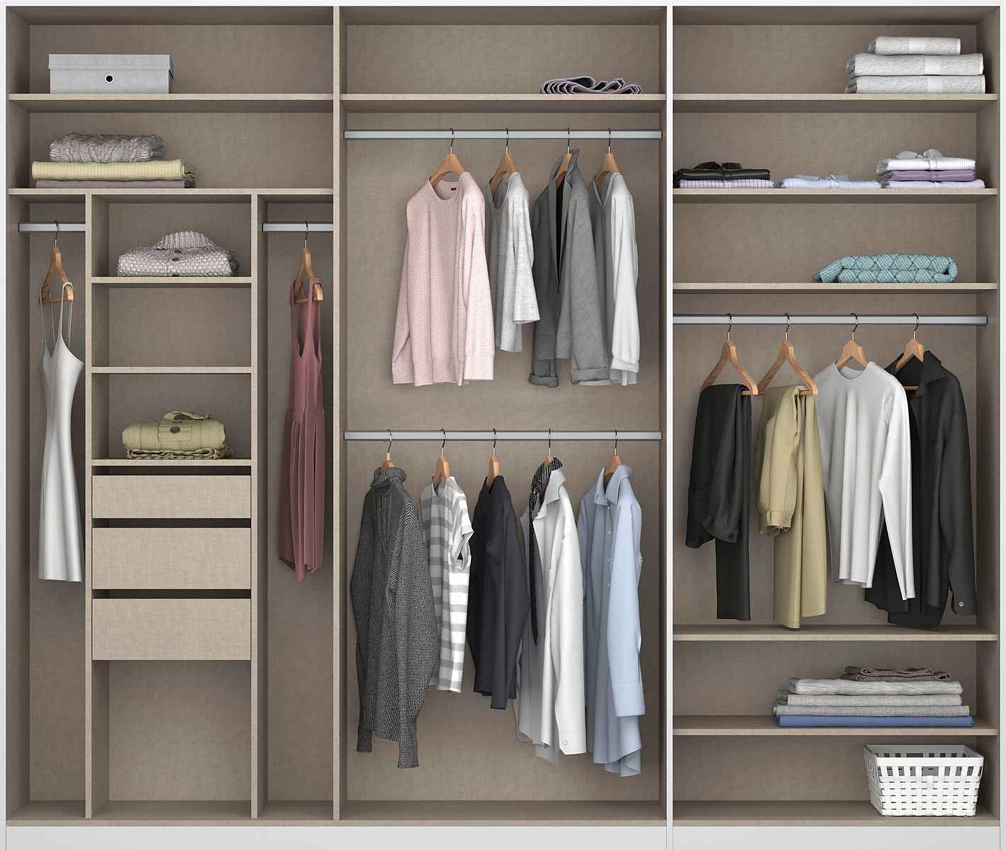 Rafturile și șinele pentru haine pot fi folosite individual și reglate pe înălțime