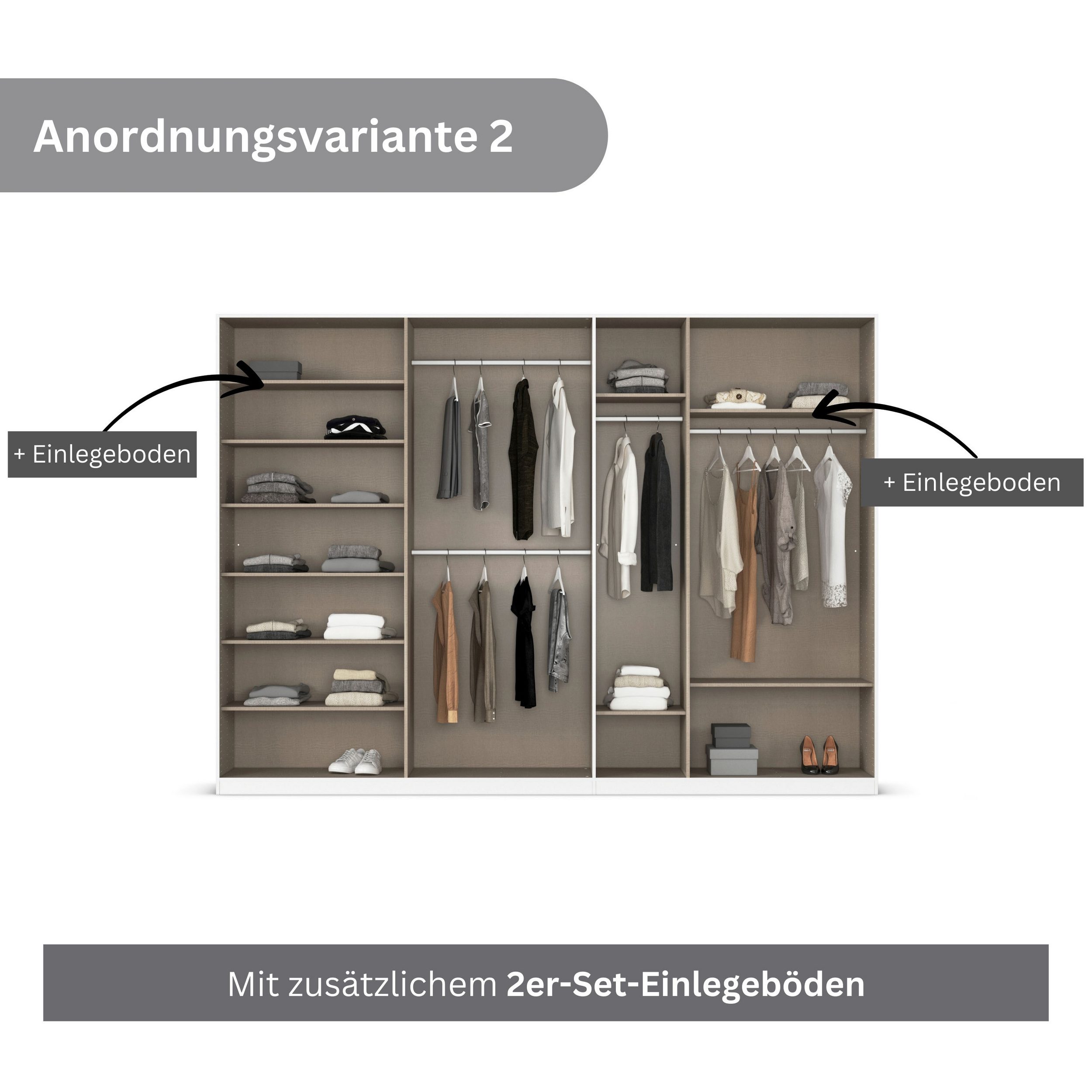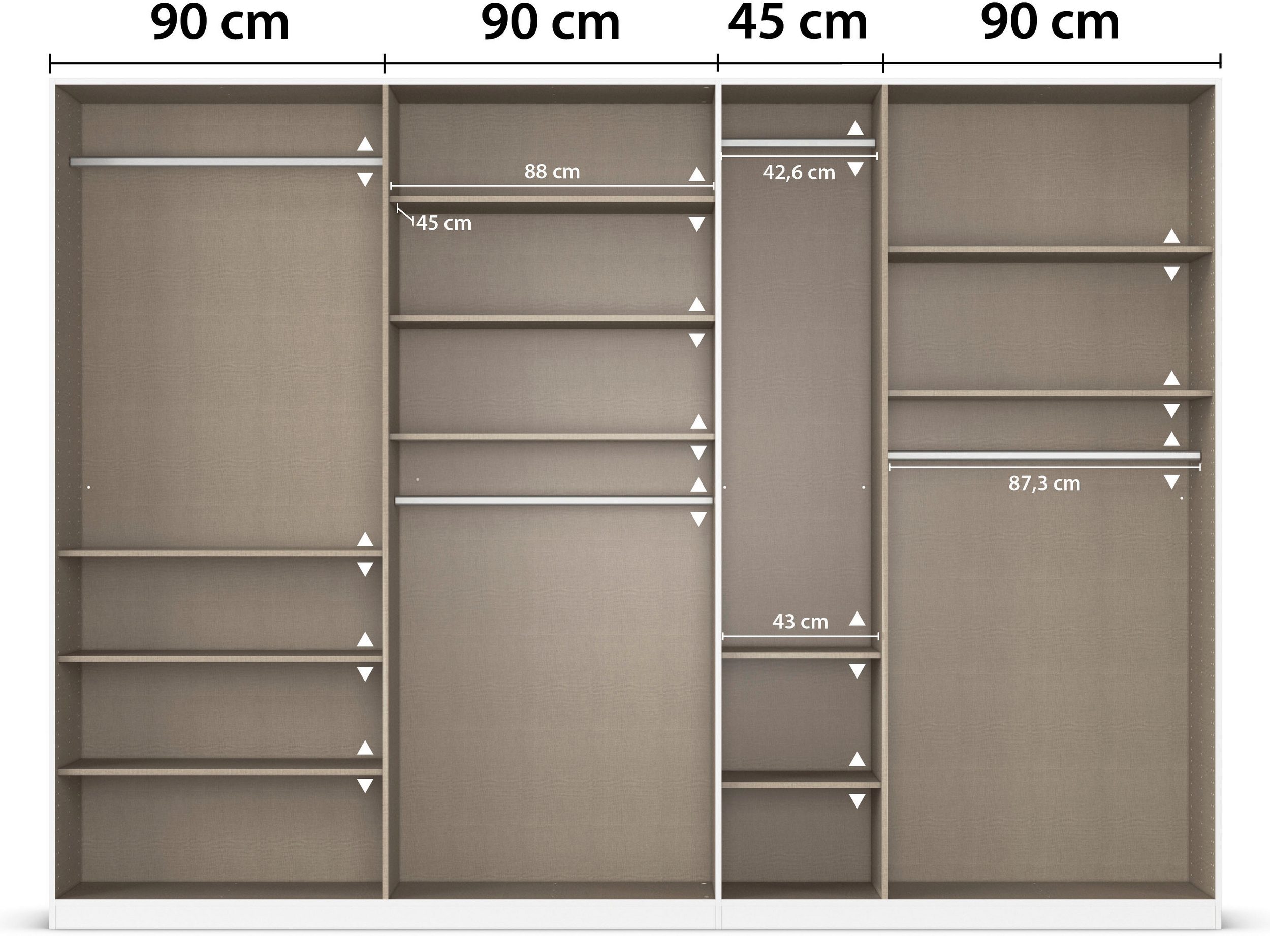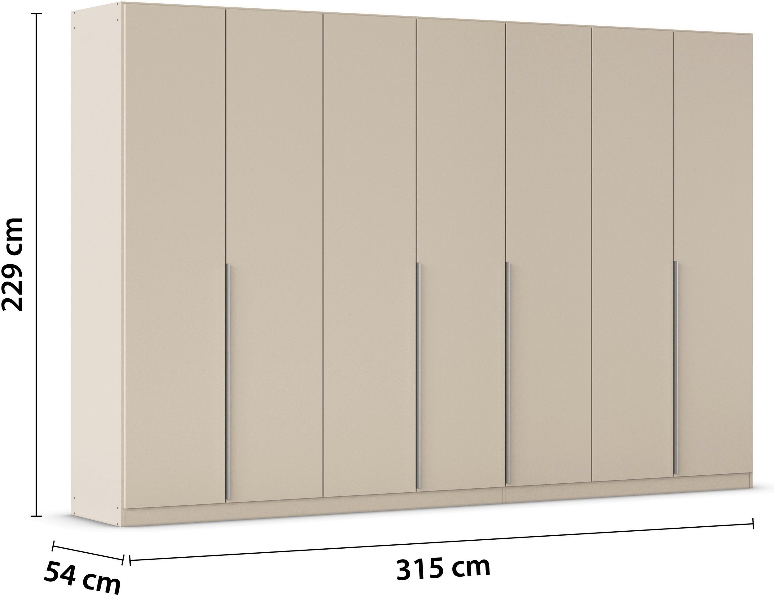Dulap 315 cm lungime, 7 uși batante, culoare cașmir, compartimentare premium, 229 cm înălțime