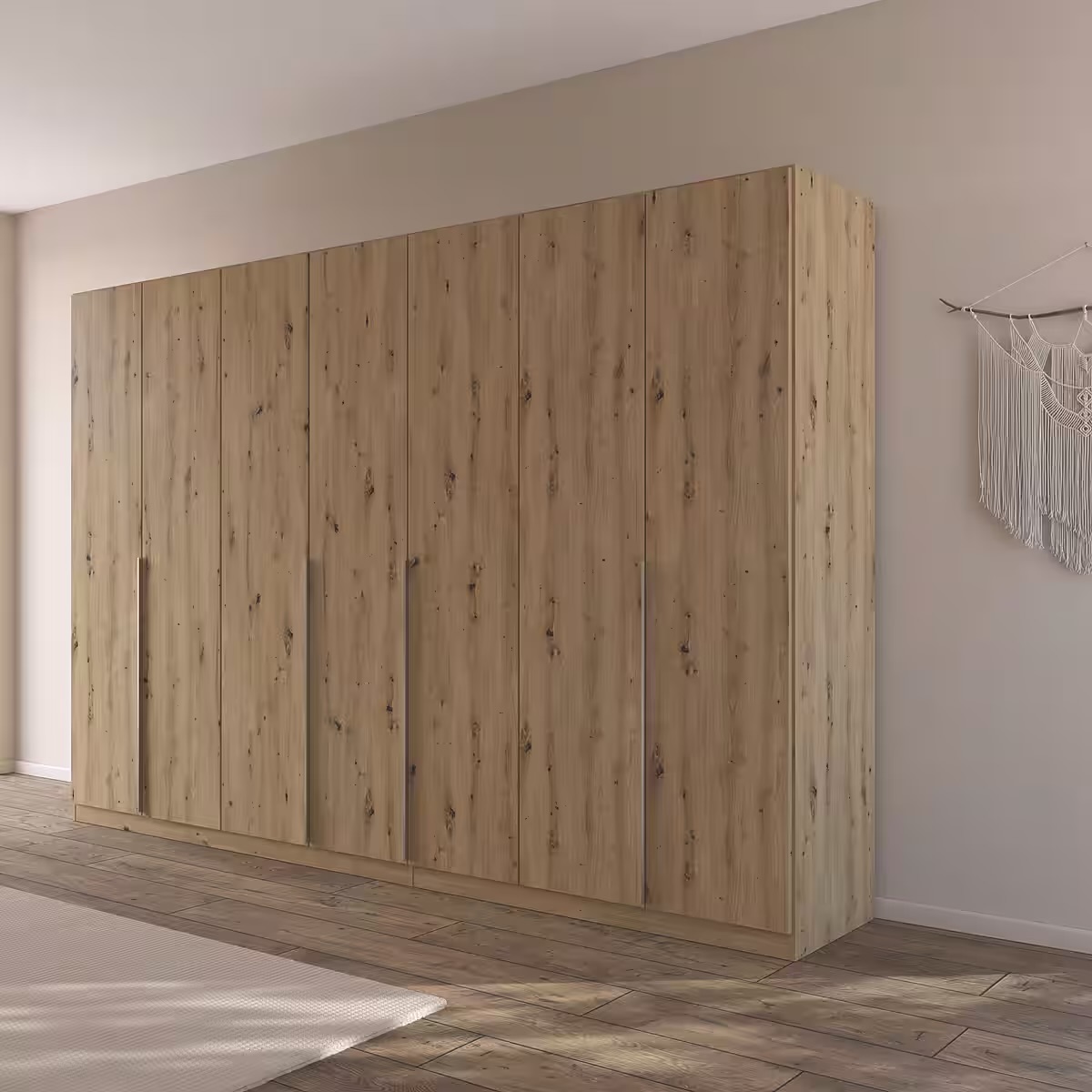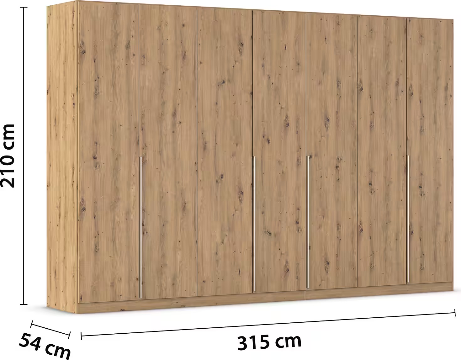 Dulap 315 cm lungime, 7 uși batante, culoare stejar, 210 cm înălțime