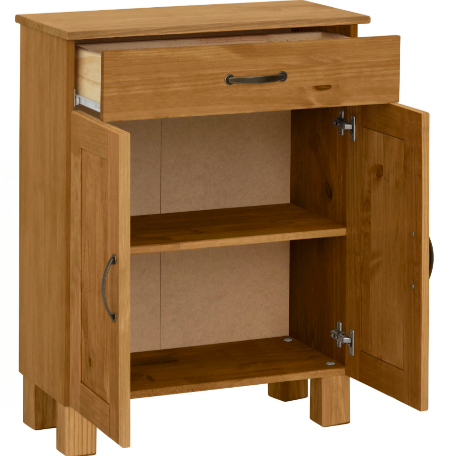Completează-ți locuința cu un mobilier elegant și practic — dulapul din lemn masiv, culoare naturală, este alegerea perfectă pentru un spațiu organizat și plin de farmec rustic. Cu o lățime de 60 cm, adâncime de 30 cm și înălțime de 80 cm, această piesă compactă se integrează ușor în baie, dormitor, living sau hol. Realizat din lemn masiv de înaltă calitate, dulapul impresionează prin durabilitate și aspectul autentic al lemnului natural, completat de mânerele din alamă antică ce adaugă o notă clasică și elegantă. Spațiul interior este bine organizat, cu rafturi generoase pentru depozitare și un sertar superior practic pentru obiectele mici, oferind funcționalitate maximă într-un design simplu și plăcut. Ideal pentru cei care apreciază calitatea, naturalețea și estetica tradițională, acest dulăpior aduce un plus de căldură și armonie oricărui interior.