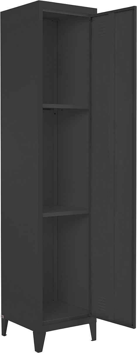 Designul minimalist cu aspect de dulap se potrivește cu numeroase concepte de locuit. Poate fi folosit fie in camera adolescentului, in biroul de acasa, pe hol sau chiar in camera dumneavoastra de utilitate. In spatele usii se afla compartimente spatioase in care poti depozita materiale de lucru, produse de curatenie sau accesorii pentru casa. Dulapul este realizat din metal vopsit cu pulbere de înaltă calitate. Un alt avantaj este suprafața ușor de întreținut.