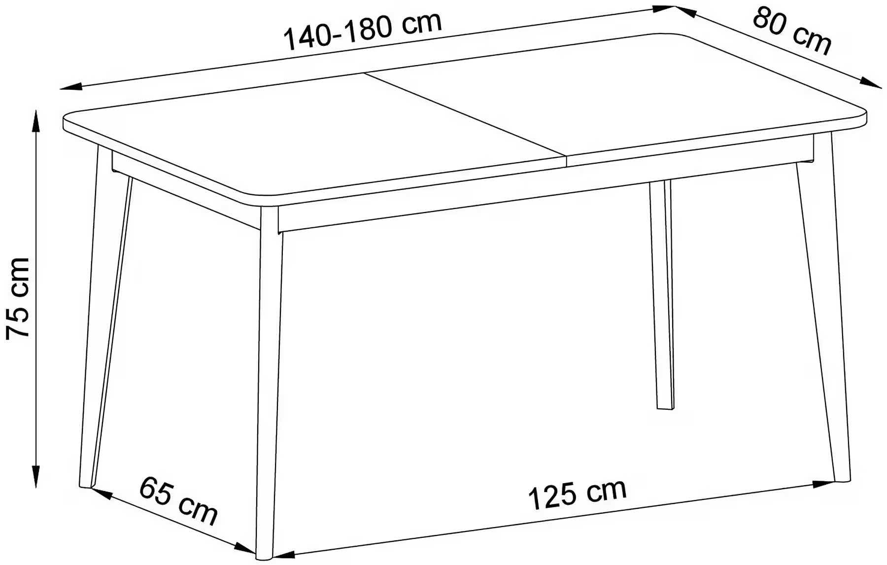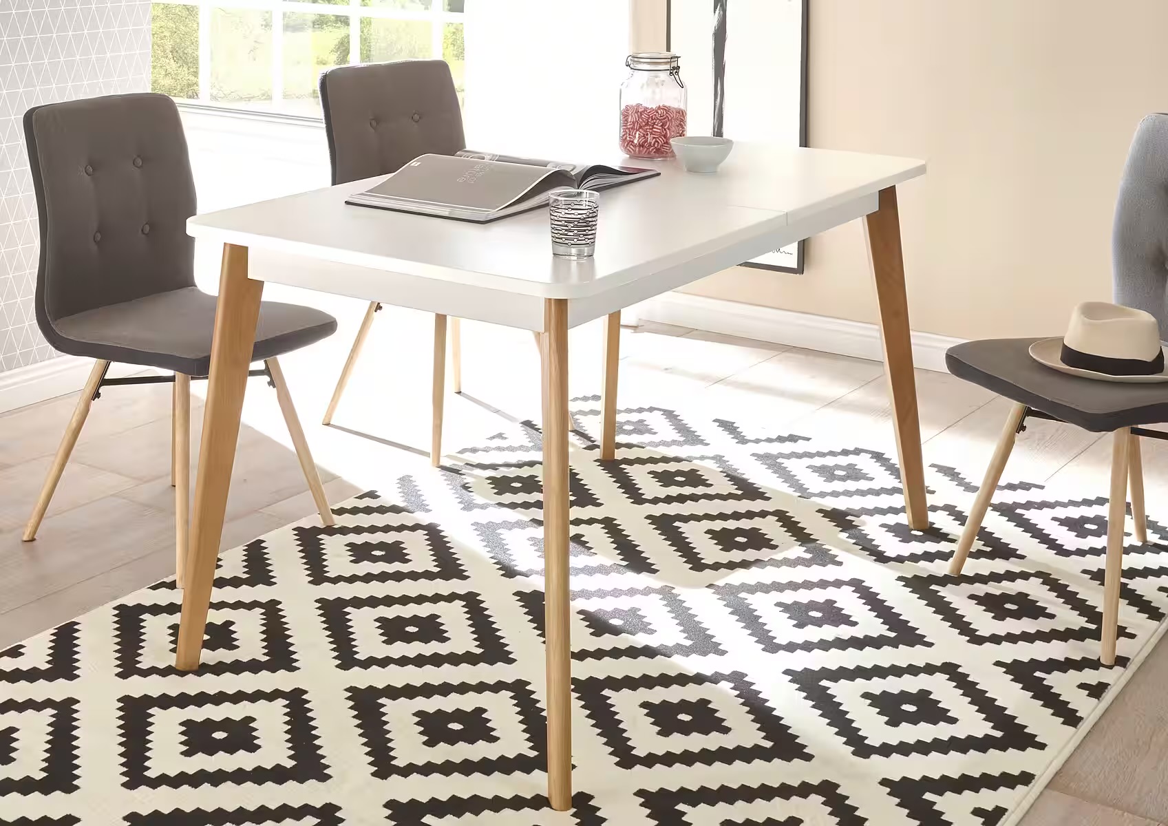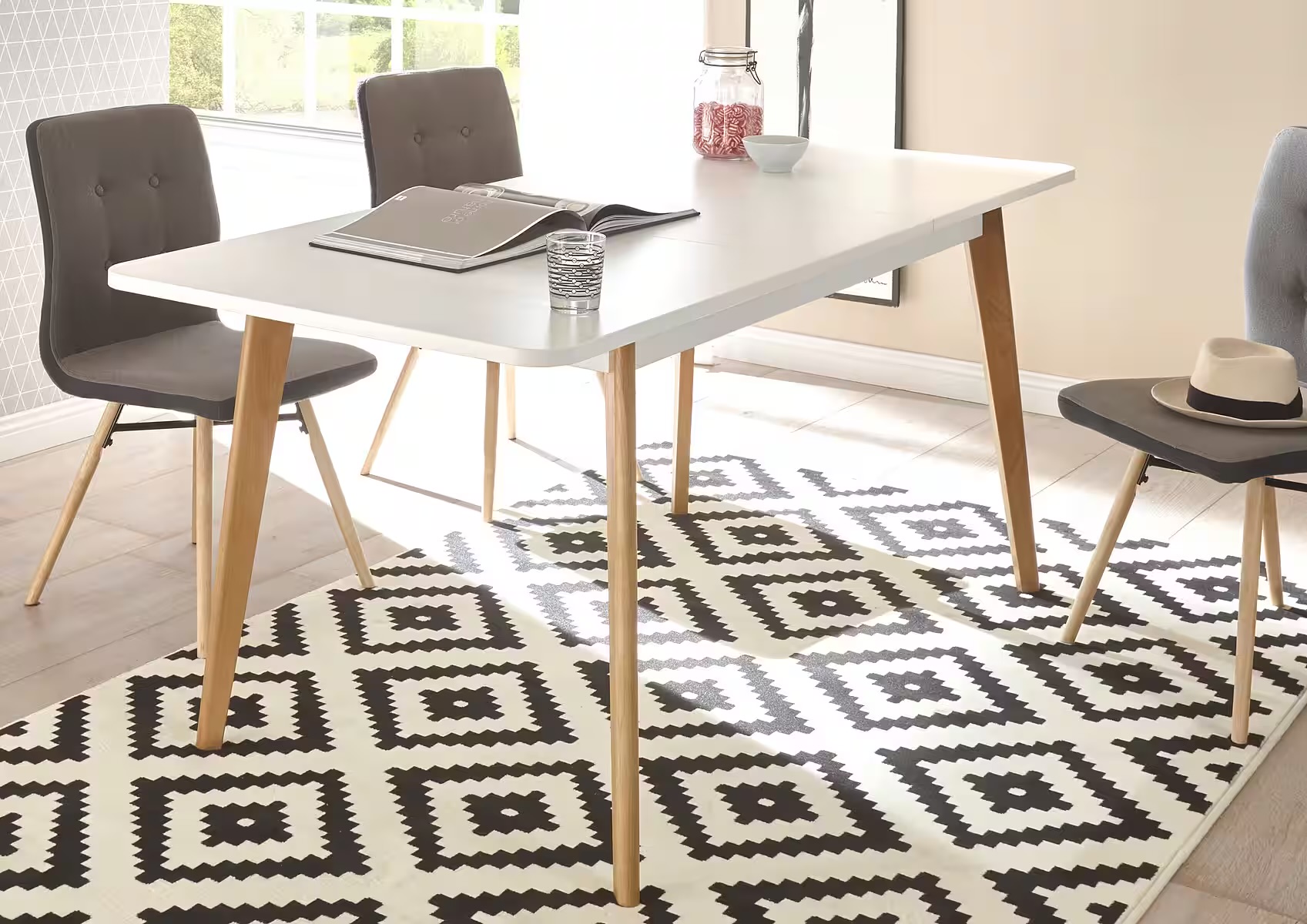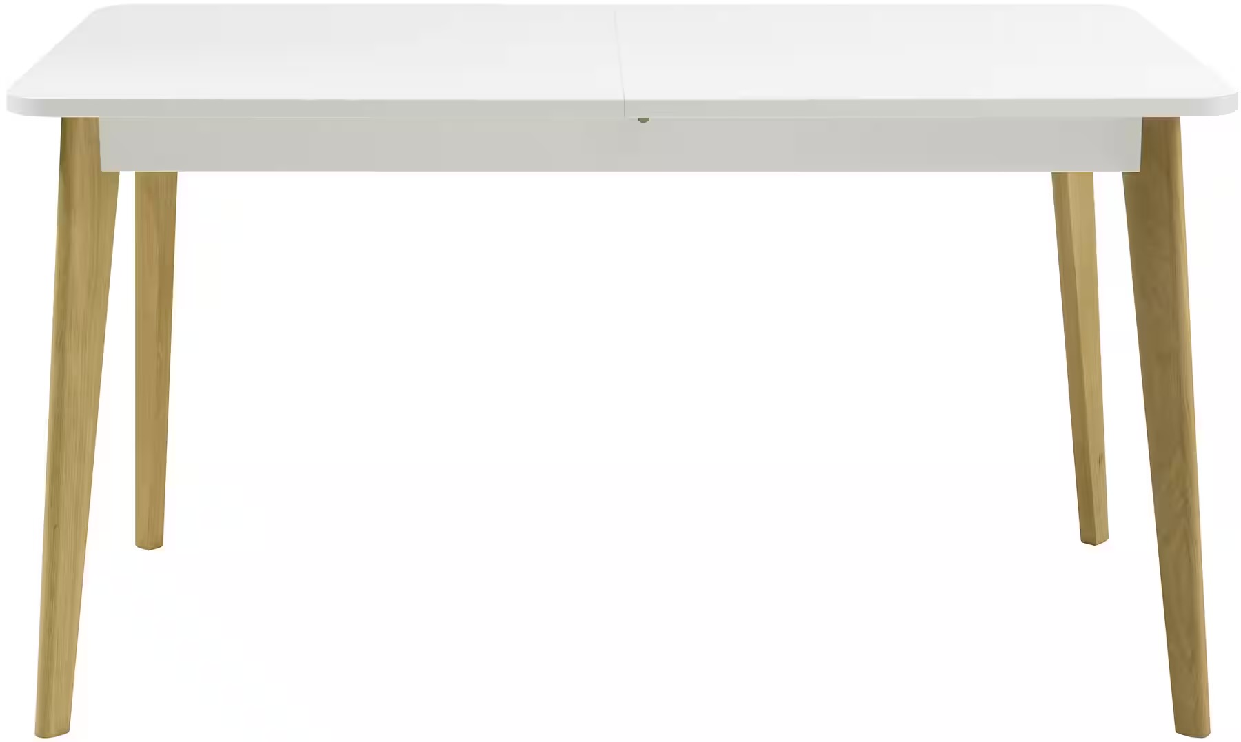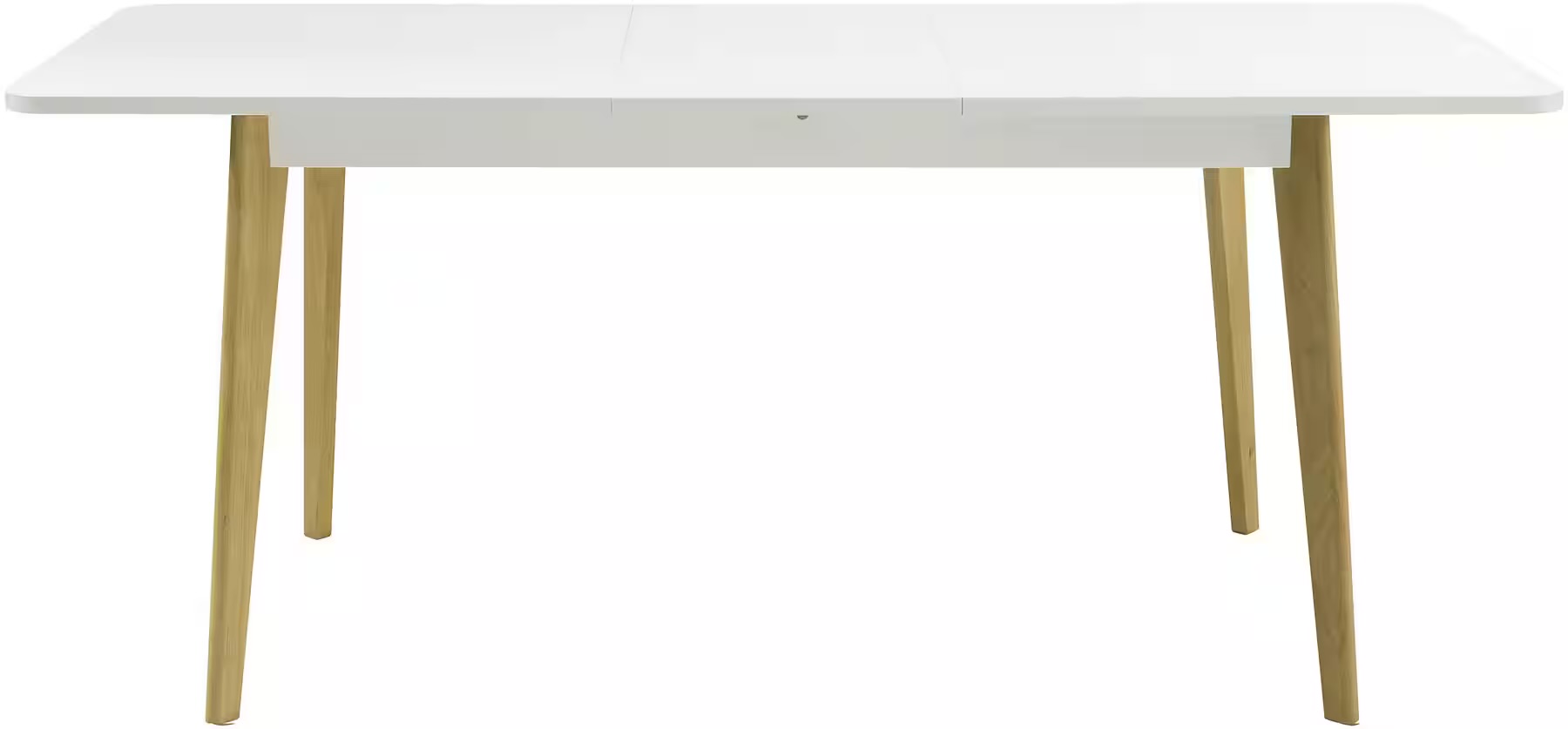 Masă extensibilă, culoare albă, picioare lemn, 140-180 cm
