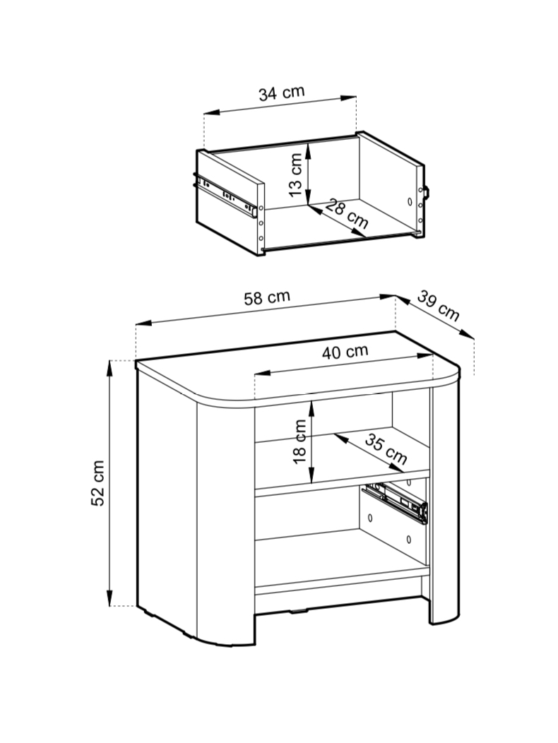 Noptieră modernă în nuanța elegantă de cashmir, cu un design minimalist și colțuri rotunjite, perfectă pentru dormitoarele contemporane. Compactă, dar funcțională, oferă spațiul necesar pentru depozitarea obiectelor de zi cu zi și un blat superior ideal pentru lampă, cărți sau alte accesorii.