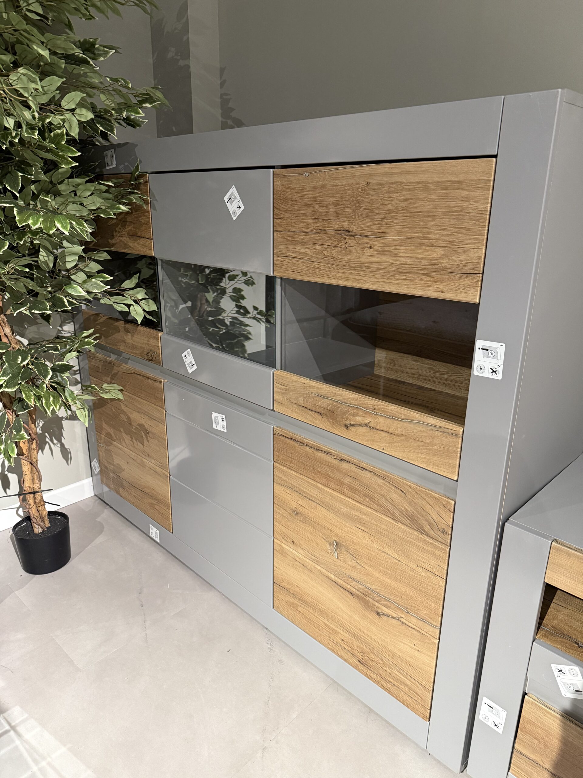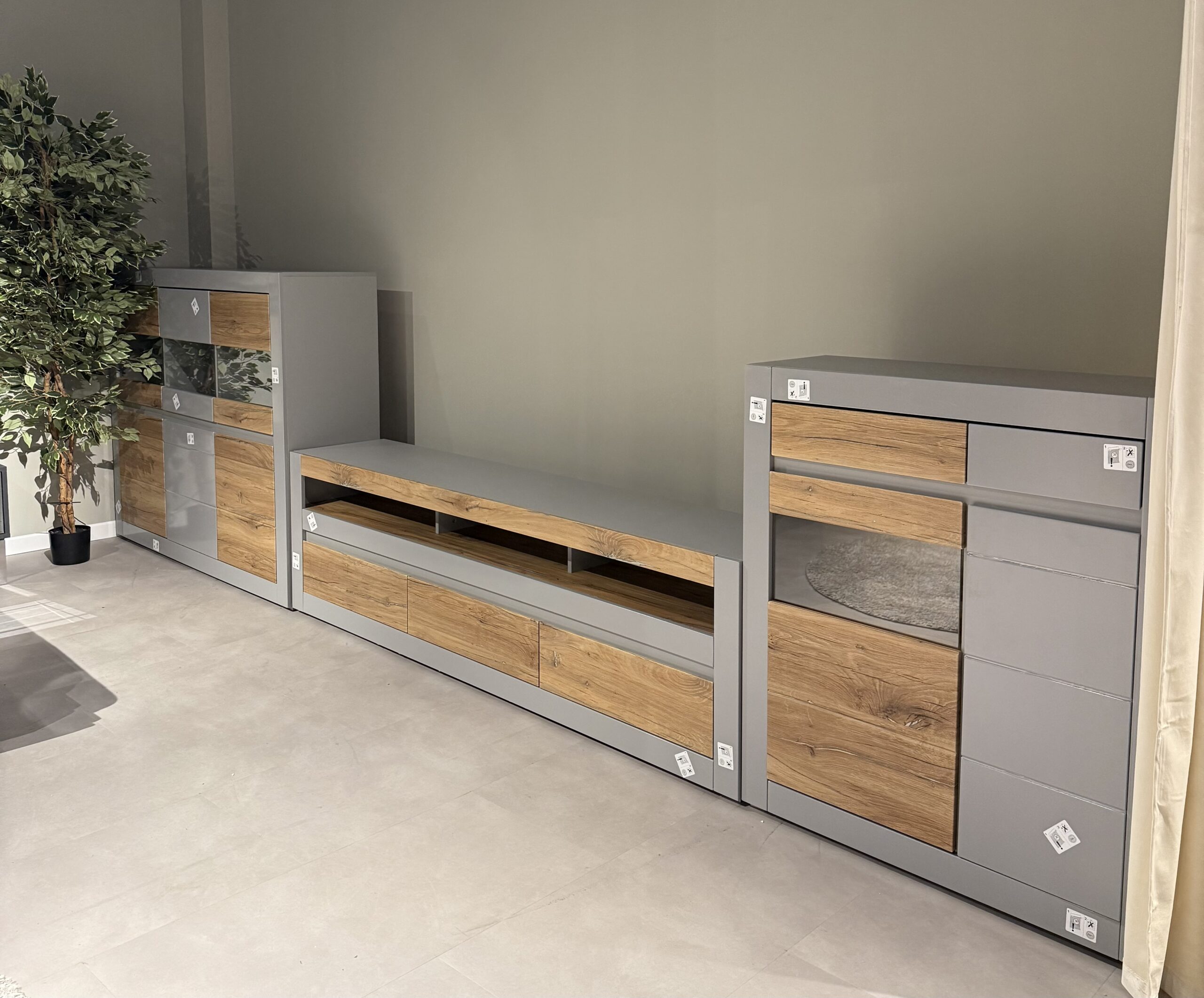 Set living format din 3 piese, material MDF, culoare gri-stejar