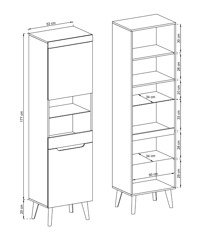 Cu o lățime compactă de 53 cm, vitrina DOLOMITES este ideală pentru spațiile mai mici, fără a compromite aspectul estetic sau capacitatea de depozitare.